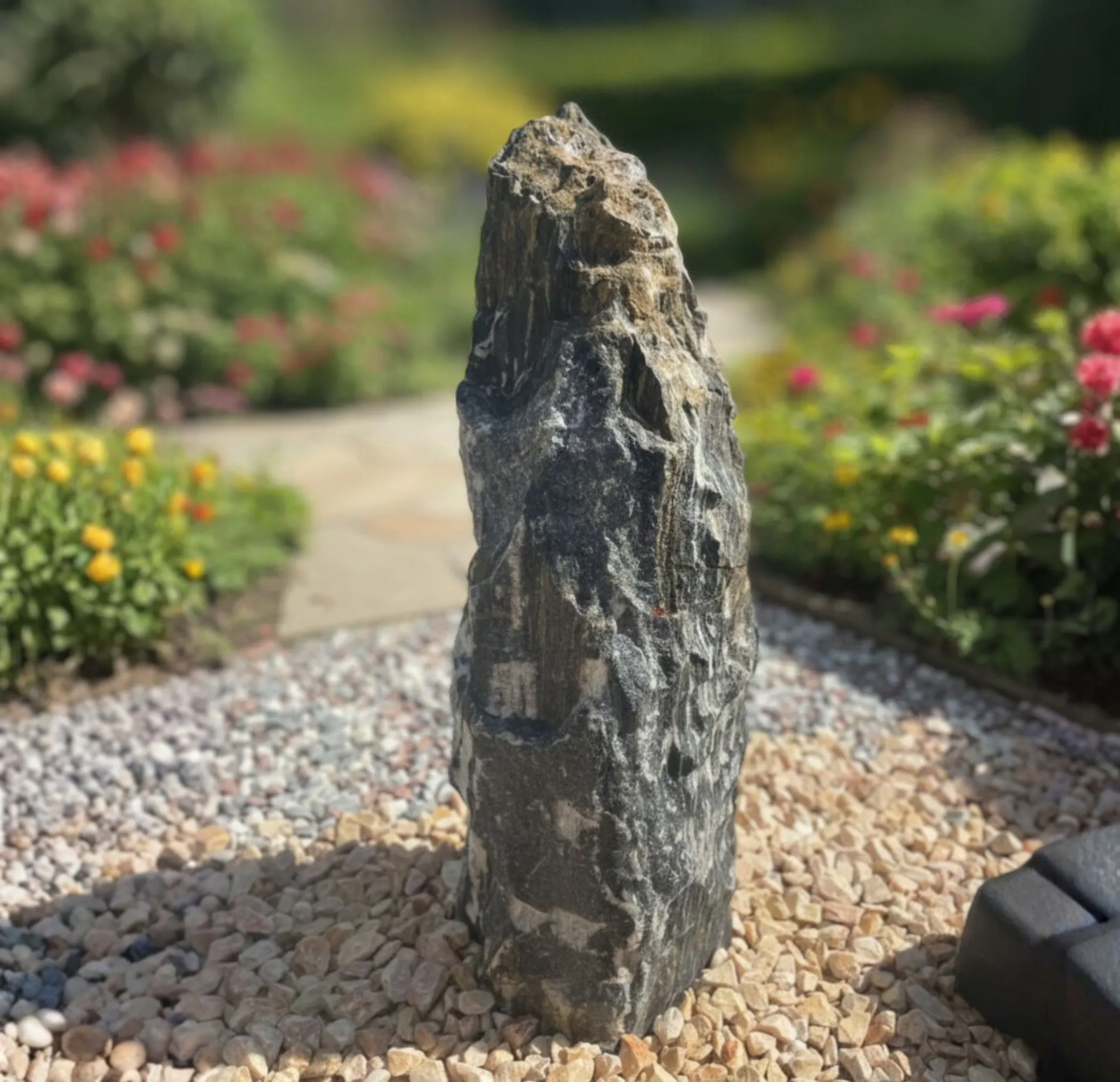 Utilisé comme élément vertical dans un aménagement paysager, ce monolithe apporte du relief, du caractère et une touche minérale élégante à votre extérieur.